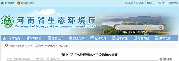 河南省生態(tài)環(huán)境廳發(fā)布《農(nóng)村生活污水處理設(shè)施水污染物排放標準》