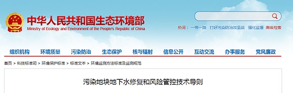 生態(tài)環(huán)境部發(fā)布《污染地塊地下水修復和風險管控技術導則》