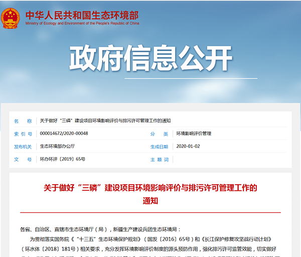 2020年1月2日,生態(tài)環(huán)境部辦公廳發(fā)布了《關(guān)于做好“三磷”建設(shè)項(xiàng)目環(huán)境影響評價與排污許可管理工作的通知》,詳情如下: