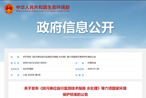 生態(tài)環(huán)境部發(fā)布了《排污單位自行監(jiān)測(cè)技術(shù)指南 水處理》等六項(xiàng)國家環(huán)境保護(hù)標(biāo)準(zhǔn)的公告