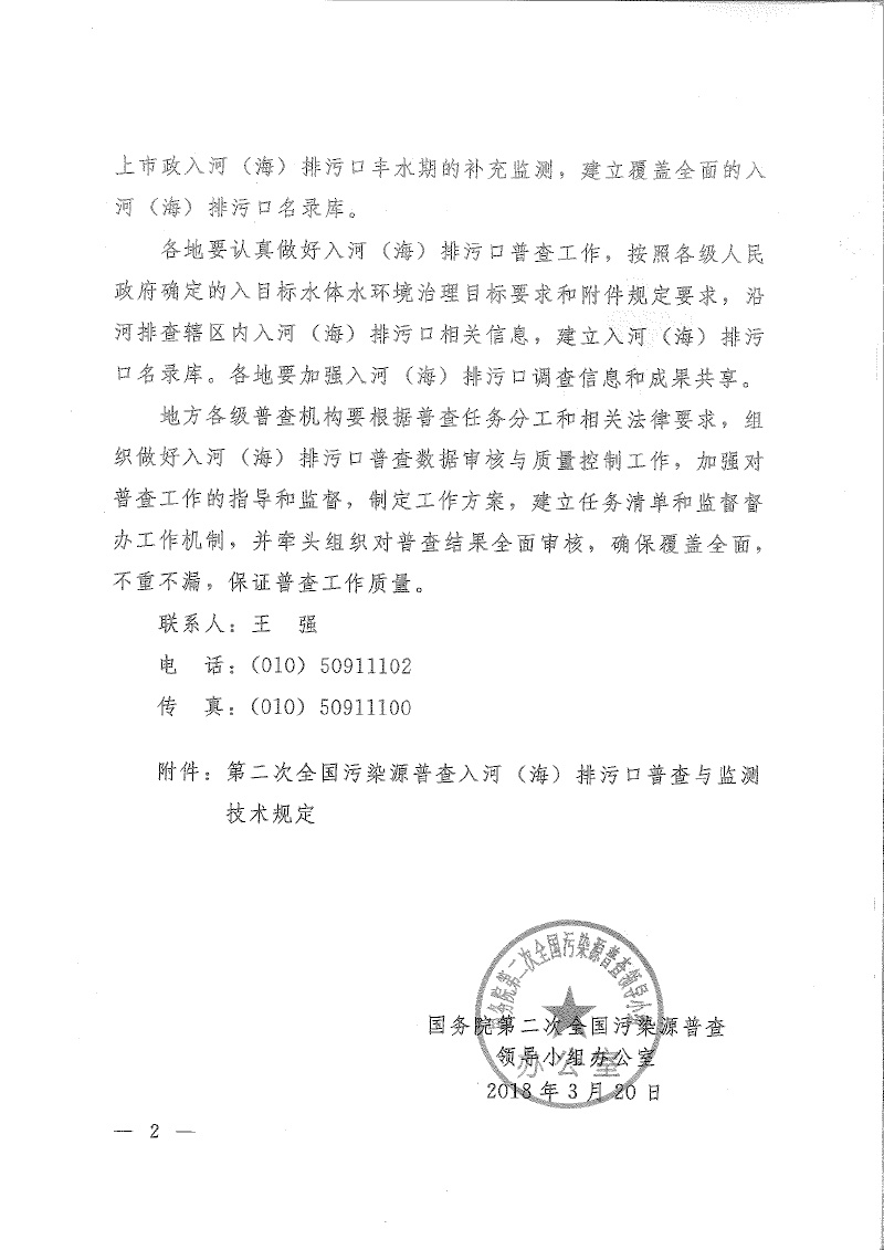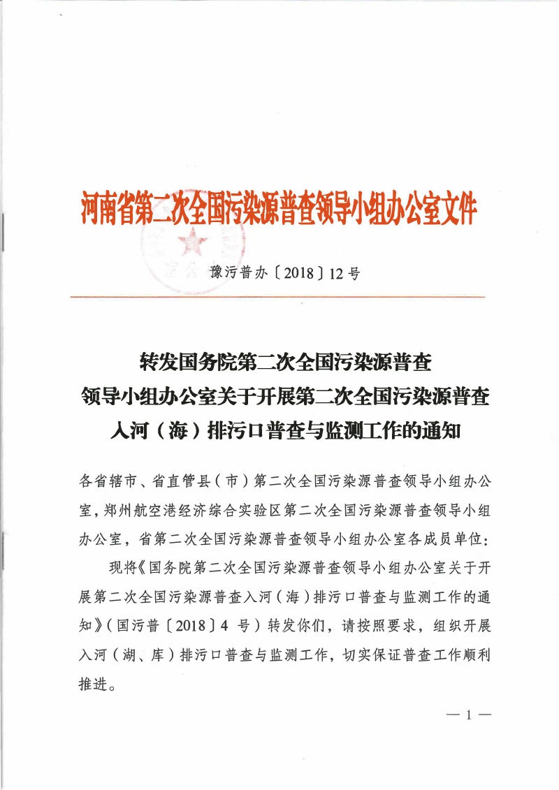 豫污普辦【2018】12號(hào)轉(zhuǎn)發(fā)國務(wù)院第二次全國污染源普查領(lǐng)導(dǎo)小組辦公室關(guān)于開展第二次全國污染源普查入河(海)排污口普查與監(jiān)測工作的通知