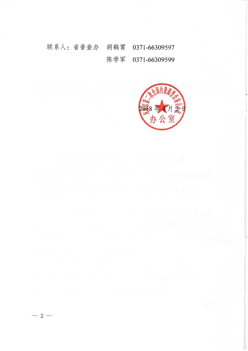 上一篇:豫污普辦【2018】11號(hào)轉(zhuǎn)發(fā)國務(wù)院第二次全國污染源普查領(lǐng)導(dǎo)小組辦公室關(guān)于印發(fā)第二次全國污染源普查清查技術(shù)規(guī)定的通知 下一篇:豫污普辦【2018】13號(hào)關(guān)于加快推進(jìn)河南省第二次全國污染源普查清查建庫工作的緊急通知