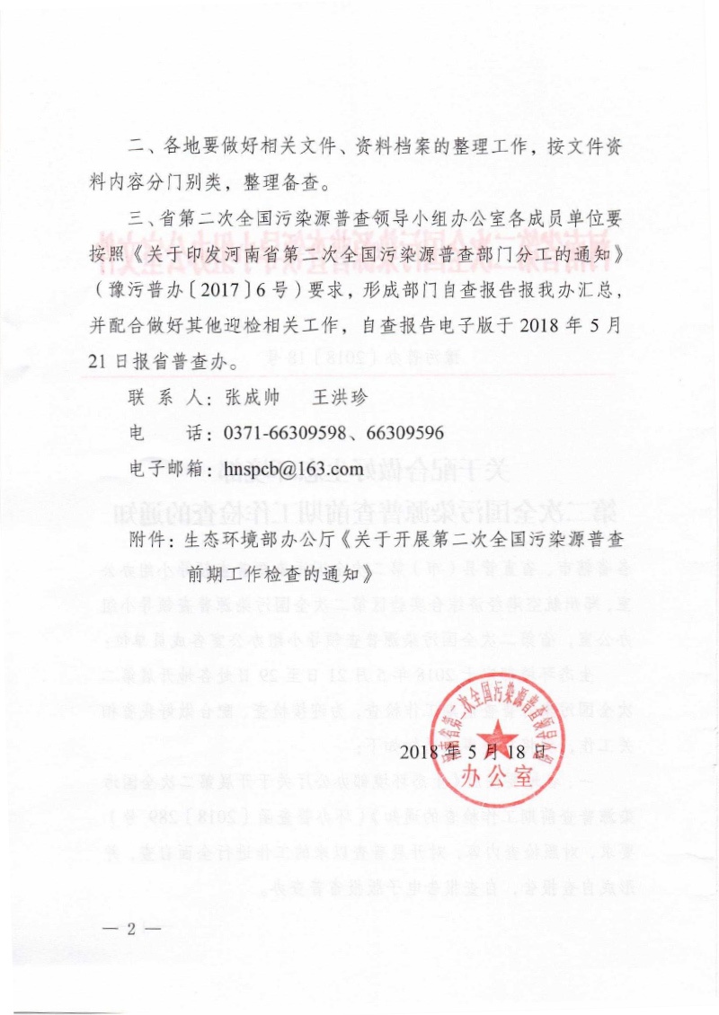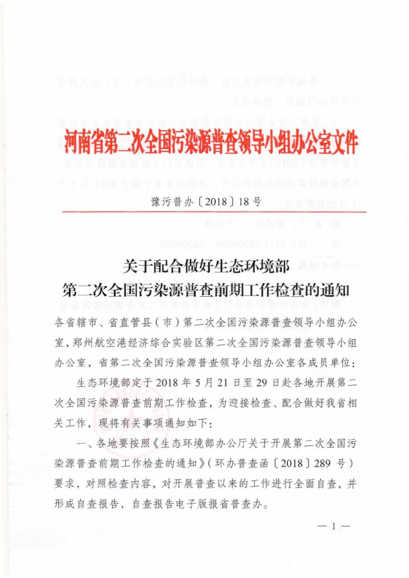 豫污普辦【2018】18號關(guān)于配合做好生態(tài)環(huán)境部第二次全國污染源普查前期工作檢查的通知