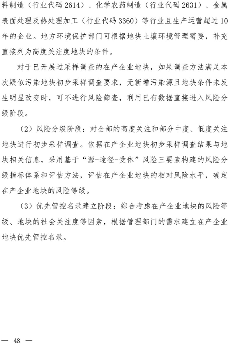 在產(chǎn)企業(yè)地塊風(fēng)險(xiǎn)篩查與風(fēng)險(xiǎn)分級技術(shù)規(guī)定